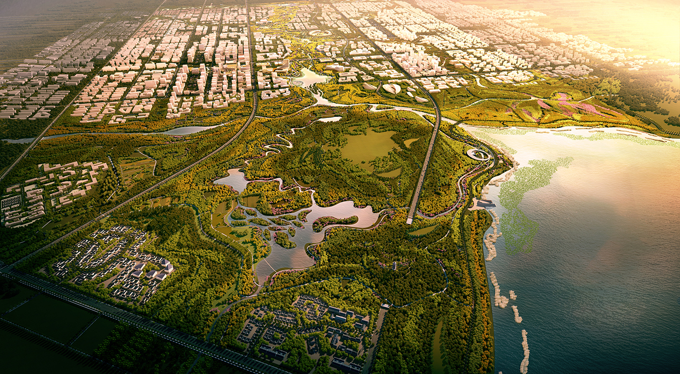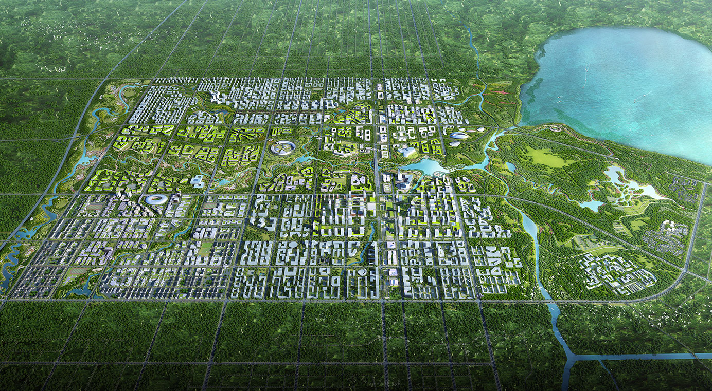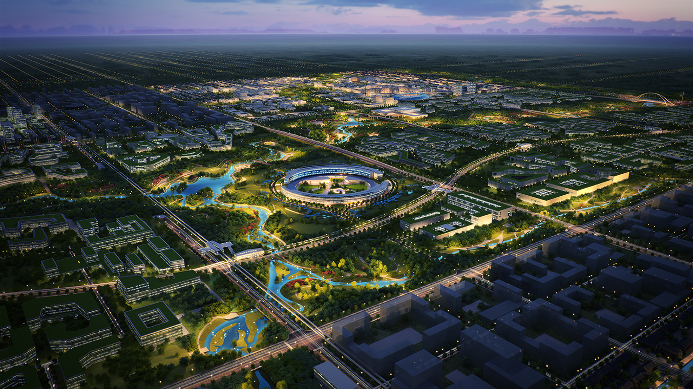 項(xiàng)目位于河北雄安新區(qū)啟動(dòng)區(qū),著眼建設(shè)北京非首都功能疏解集中承載地,打造城市建設(shè)的典范。設(shè)計(jì)中以“水綠溶淀,生態(tài)自然”、“研產(chǎn)聯(lián)合,創(chuàng)新驅(qū)動(dòng)”、“學(xué)研興城,開(kāi)放融合”、“人文日新,活力宜居”為規(guī)劃特色,延續(xù)區(qū)域城市軸線,形成“一谷、一軸、四川、七組團(tuán)”的基本城市框架;景觀方面,強(qiáng)調(diào)用地復(fù)合,綠地滲透,形成自然環(huán)境與建設(shè)用地高度融合的空間關(guān)系,打造“一谷四川、五圖十景”的城市綠脊藍(lán)脈;產(chǎn)業(yè)方面,瞄準(zhǔn)世界科技前沿,發(fā)展高端高新產(chǎn)業(yè)。發(fā)揮高校在產(chǎn)業(yè)科技創(chuàng)新體系中的作用,產(chǎn)教結(jié)合,構(gòu)建“科技實(shí)業(yè)、科技園區(qū)、科技金融”三位一體的產(chǎn)業(yè)生態(tài)系統(tǒng),實(shí)現(xiàn)雄安新區(qū)內(nèi)生性增長(zhǎng)。