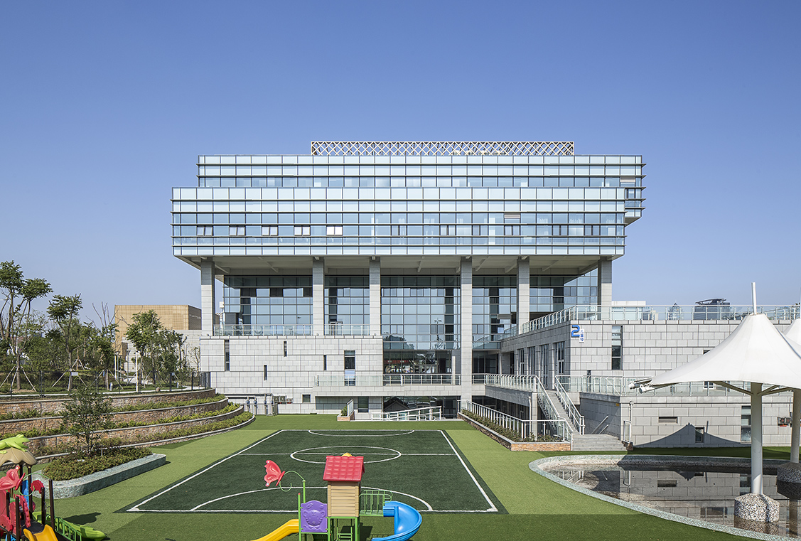 項目位于蘇州高新區(qū)何山腳下,西鄰新區(qū)公園,采用“生長的積木”這一概念,用最簡單的“方形盒子”來 累積建筑的體量,通過各種“盒子”的搭接和錯動來適應功能和地形,很多體塊以山勢、軸線等簡單、具 象的設計元素“生長”出來。