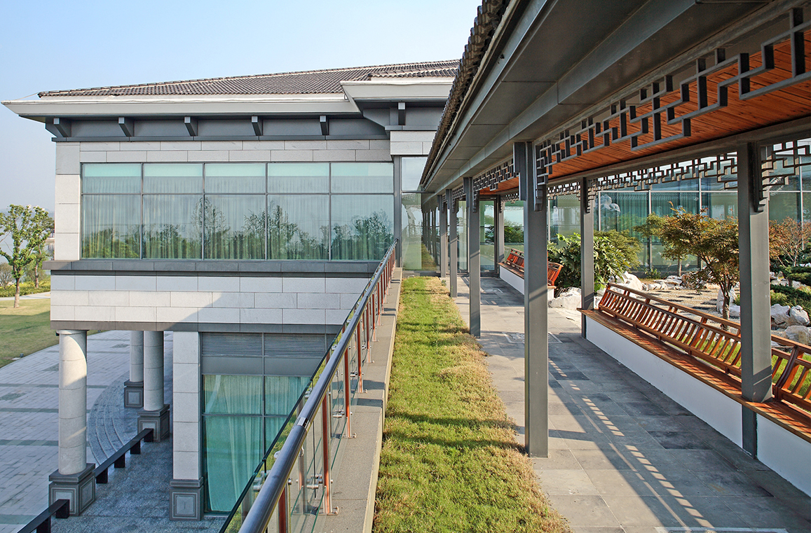 東山賓館三期綜合樓東臨太湖,南面與歷史悠久的蘇州園林啟園毗鄰,是接待國家級首長及外國元首的 基地。項目以蘇州傳統(tǒng)文化為根本,結(jié)合現(xiàn)代建構(gòu)技術(shù),盡顯時代精神和蘇州特色。