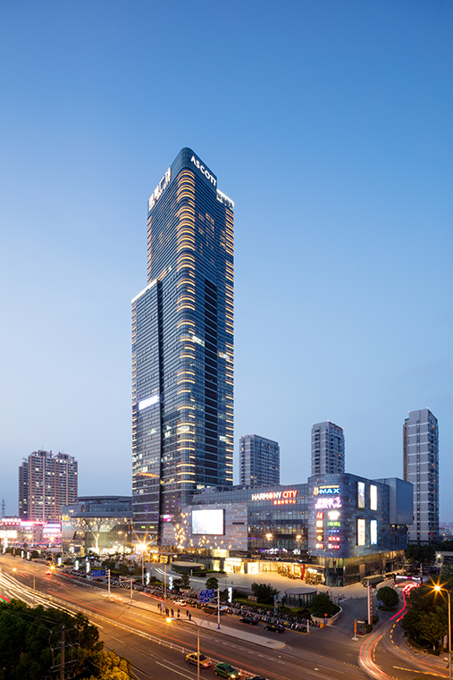 項(xiàng)目位于南通城市南北中軸線交匯的黃金地段,是新老城區(qū)的交匯 點(diǎn)。項(xiàng)目功能為公寓式酒店、辦公和商業(yè)。設(shè)計(jì)構(gòu)思來(lái)源于“鉆石永 恒之美”,結(jié)合鉆石切割的設(shè)計(jì)美學(xué)體現(xiàn)圓融廣場(chǎng)的地標(biāo)價(jià)值與高端 定位。通過(guò)對(duì)三角“鉆石”單元的組合變幻,形成建筑的設(shè)計(jì)亮點(diǎn)。廣 場(chǎng)大屋面由若干三角“鉆石”單元拼合而成,漸變的色彩猶如鉆石各個(gè) 角度折射的光影;流動(dòng)的形體又柔化了“鉆石”自身的堅(jiān)硬感。它們或 透明或鏤空,飄逸靈動(dòng)、輕舞飛揚(yáng)。夜幕降臨,一片片“鉆石”宛若繁 星點(diǎn)點(diǎn),高雅而時(shí)尚?!般@石”屋面延伸至建筑各個(gè)入口,既可作為遮 風(fēng)避雨的設(shè)施,又能提供大面積的城市公共空間。