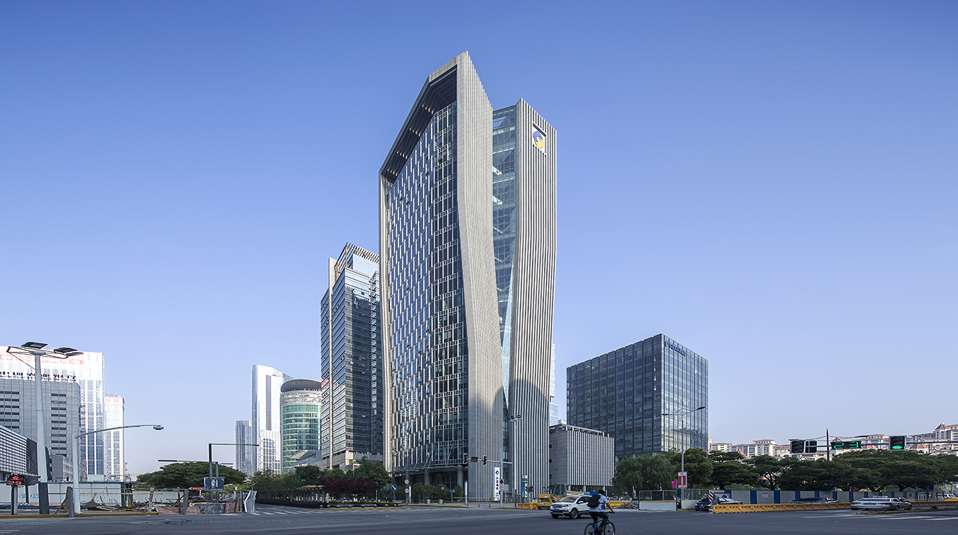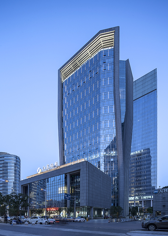 征,以符合當?shù)靥厣慕ㄖ螒B(tài)和立面設(shè)計。設(shè)計受江蘇銀行行徽的啟發(fā),突破周邊方盒子式的高層建筑群的傳統(tǒng)造型,建筑形體通過兩個“J”形體量旋轉(zhuǎn)生成,兩個體量互相環(huán)抱、不斷攀升,象征著企業(yè)蒸蒸日上的積極形象。