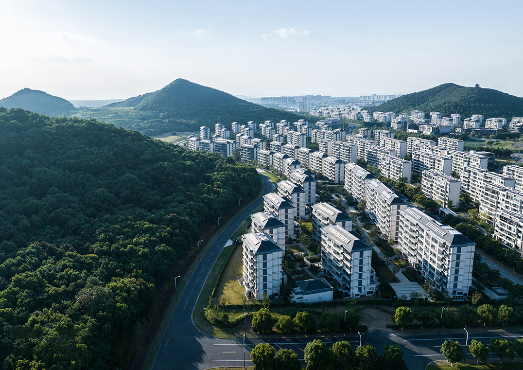 建筑群體為適應(yīng)不規(guī)則地形成靈活多變的自由式布局,通過(guò)單元錯(cuò)位、改變朝向、變化間距,有效利用地形,強(qiáng)化景觀滲透,融入周邊環(huán)境。