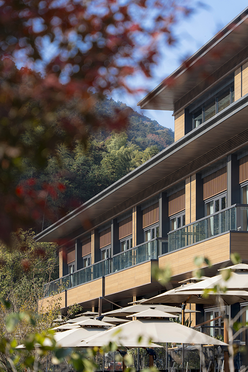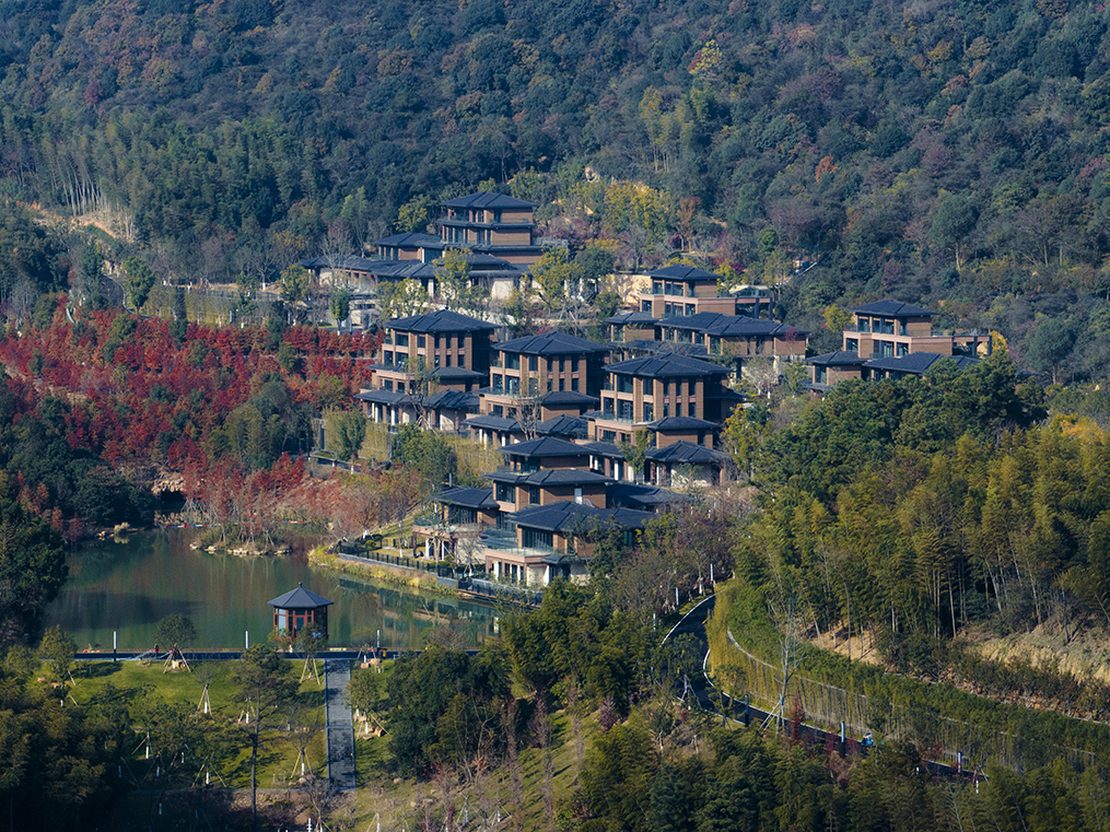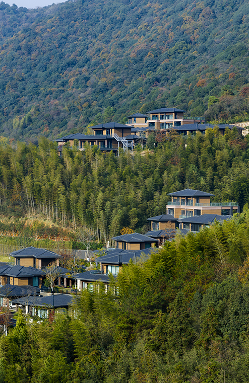 設(shè)計(jì)旨在為現(xiàn)代高強(qiáng)度生活的人們提供一個(gè)安靜,怡然的環(huán)境。青山綠水,炊煙裊裊,藍(lán)天白云,碧波蕩漾,充分利用自然環(huán)境,讓游客無時(shí)無刻與優(yōu)美的山水互動(dòng)。給予游客探索及接觸大自然的機(jī)會(huì)。場地獨(dú)特的自然條件讓建筑得以依山傍水,建筑在滿足使用功能時(shí),尊重自然的饋贈(zèng),在優(yōu)化自然環(huán)境的基礎(chǔ)上,與自然山體、水體融合為一,展現(xiàn)原汁原味的山居生活?;貧w自然的山間聚落布局建筑——人——自然和諧共生的親密關(guān)系。