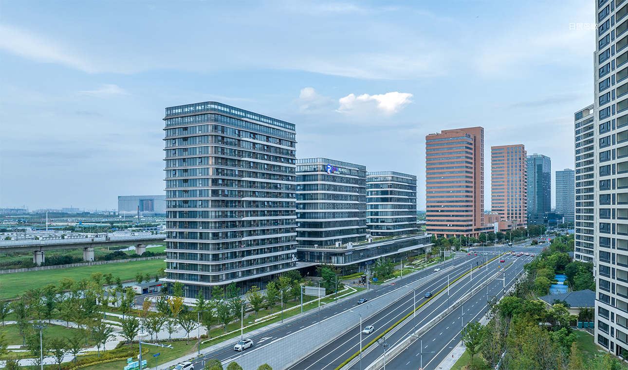 項(xiàng)目總體布局為沿南天成路一字排開(kāi),包含兩棟商務(wù)辦公、一棟公寓式酒店,兩層配套用房作為底座三大部分。項(xiàng)目背靠滬寧鐵路線,有得天獨(dú)厚的地理?xiàng)l件,因此沿南天成路立面上橫向挑檐強(qiáng)化出建筑橫向延展的形態(tài),線腳端部的細(xì)部處理,勾勒出列車(chē)輪廓,體現(xiàn)高鐵車(chē)頭之形,立面構(gòu)成上錯(cuò)動(dòng)布置,與身后高頻率行駛的高鐵列車(chē)交相輝映,蘊(yùn)含高鐵新城的快速發(fā)展之意。