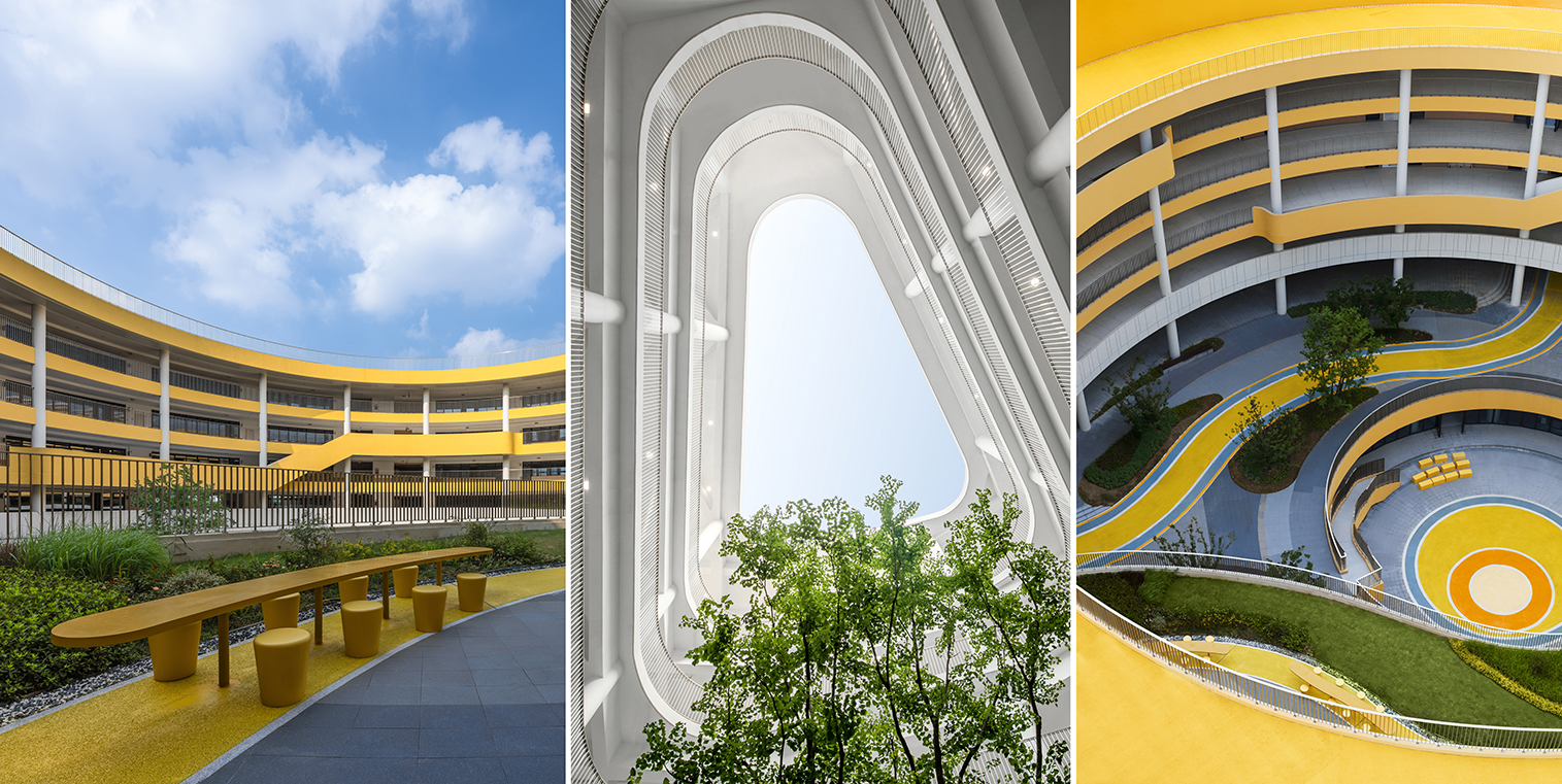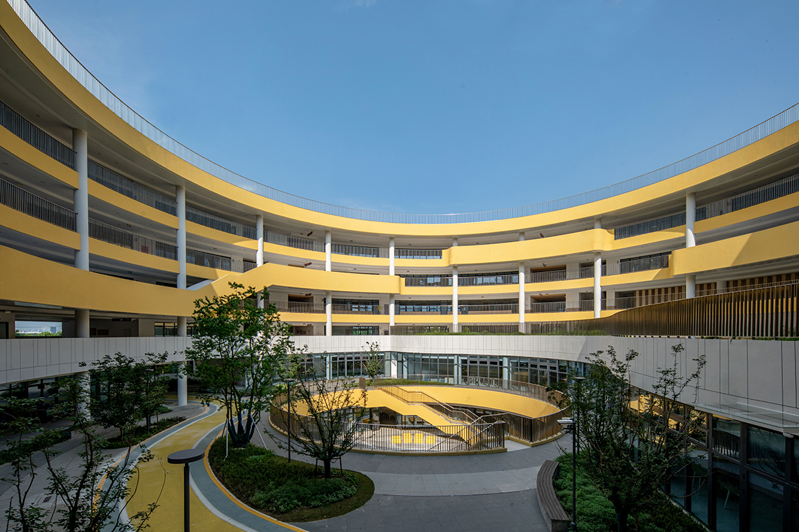 項目位于位于蘇州工業(yè)園區(qū)核心區(qū)域,每寸土地都有著效率的標(biāo)簽。但是對于學(xué)生們,他們需要一片能夠自由奔跑、多元發(fā)展的空間,而不只是一間間封閉的空調(diào)教室。設(shè)計創(chuàng)造性地解決了有限的用地資源和學(xué)校對多樣化空間需求之間的矛盾,找到學(xué)習(xí)的高效與學(xué)生的快樂之間的平衡點。對于空間的進(jìn)一步整合,達(dá)到高效利用是本案的核心。