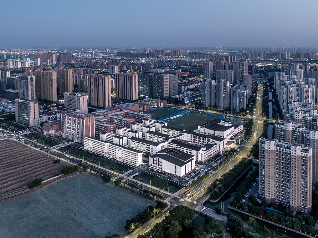 項(xiàng)目位于蘇州市吳中區(qū),建筑高度控制為檐口高度不大于24m。學(xué)校依據(jù)江蘇省普通高中四星級要求,打造吳中核心教育資源。本次設(shè)計以蘇州傳統(tǒng)江南水鄉(xiāng)底蘊(yùn)為主體,吳冠中筆下的江南卷軸為依托,通過“院”“苑”“園”的核心設(shè)計理念,完整、生動的演繹了蘇苑高級中學(xué)新校區(qū)的生成過程。設(shè)計提煉蘇州園林布局手法,將建筑功能單元散落在基地中,疏密有致,城市界面形影交錯,呼應(yīng)蘇式傳統(tǒng)園林的江南韻味。