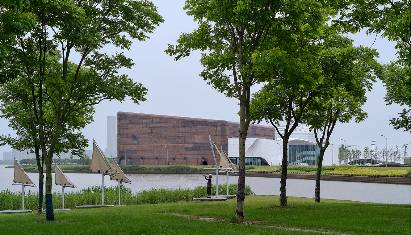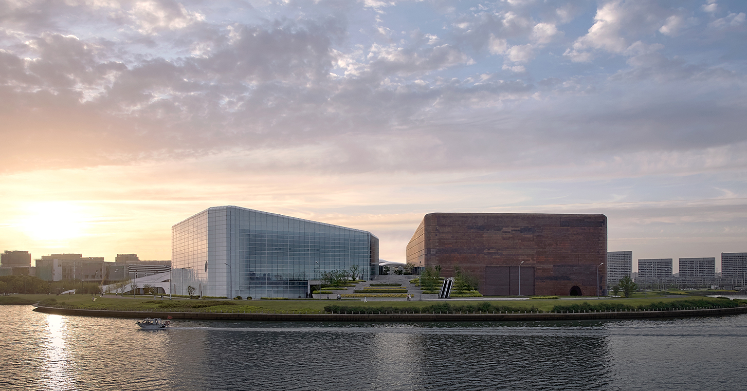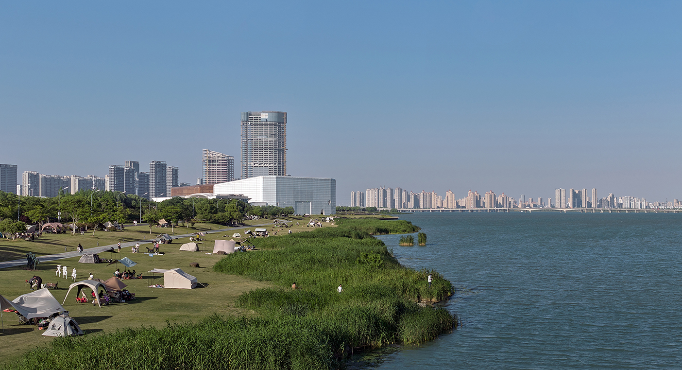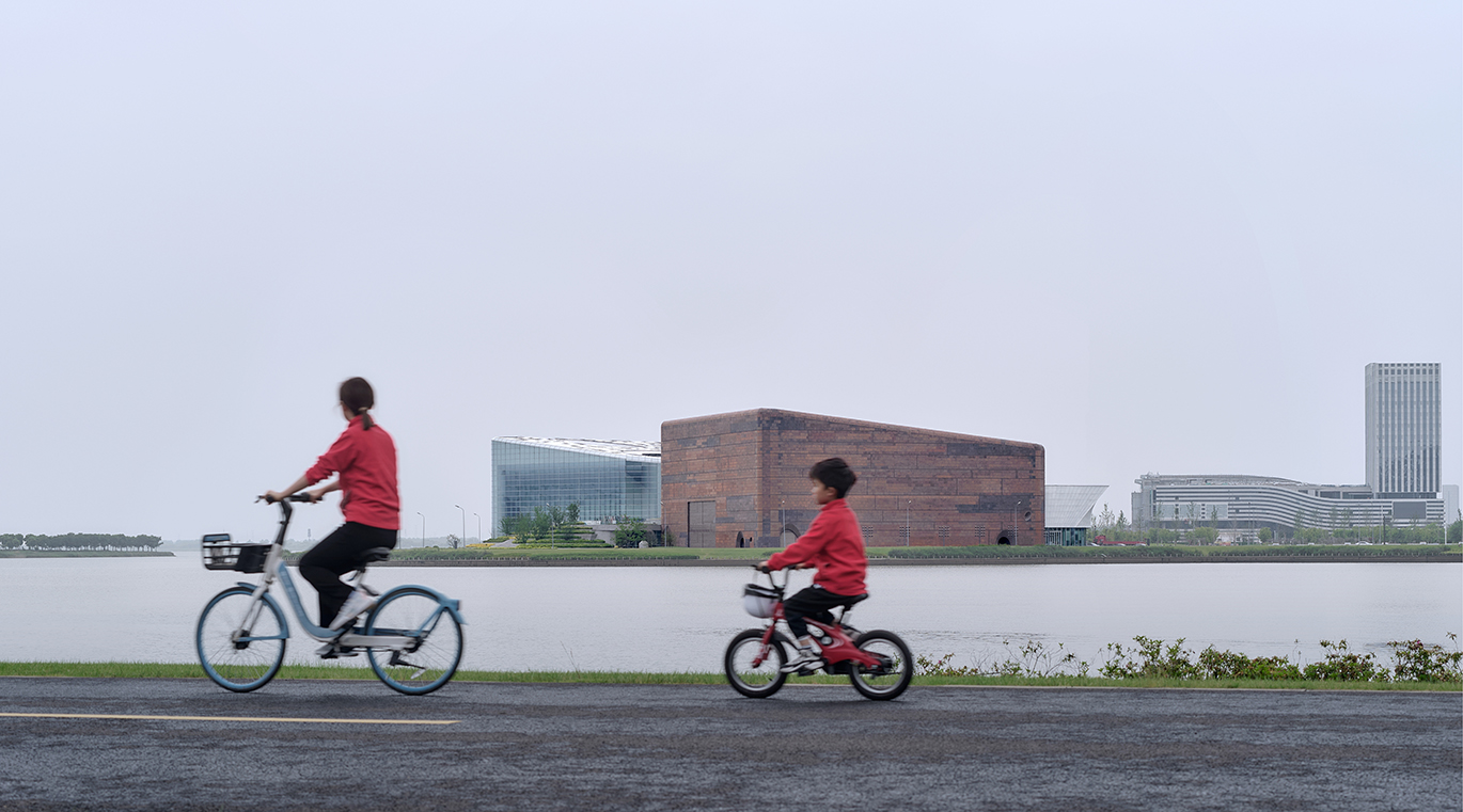 橙天嘉禾360劇場(chǎng)項(xiàng)目地處吳中太湖新城核心區(qū),項(xiàng)目建成后成為太湖周邊重要的文化標(biāo)志性建筑。設(shè)計(jì)采用“湖畔礫石”的理念,坐落在湖邊的建筑宛如自然環(huán)境中生長出來的石頭,坡地景觀的柔美自由和兩塊礫石的硬朗干脆形成鮮明對(duì)比,突顯了本項(xiàng)目與太湖文化及生態(tài)環(huán)境協(xié)調(diào)一致的理念。