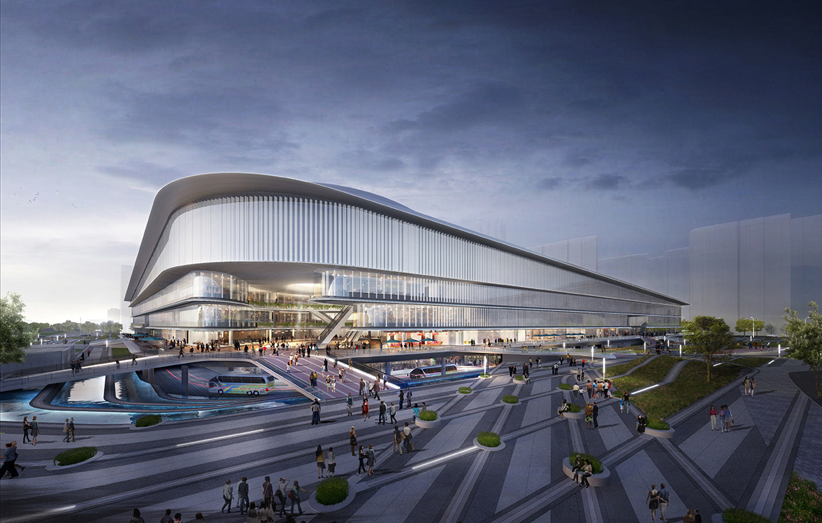 項(xiàng)目位于吳江CBD核心區(qū),為交通設(shè)施用地,項(xiàng)目建成后將集商業(yè)中心、交通樞紐、住宅及城市生活廣場于一體,立足以交通樞紐為基礎(chǔ),輻射周邊區(qū)域形成一個(gè)交通樞紐大生態(tài)圈,推動(dòng)新經(jīng)濟(jì)、新產(chǎn)業(yè)集群的發(fā)展。項(xiàng)目建筑形象主要為現(xiàn)代建筑風(fēng)格,整體造型以柔和的弧形曲面為主,地下空間和上部室外廣場空間縱橫交錯(cuò),形成了一個(gè)錯(cuò)落有致富有層次感的城市中心廣場形象。