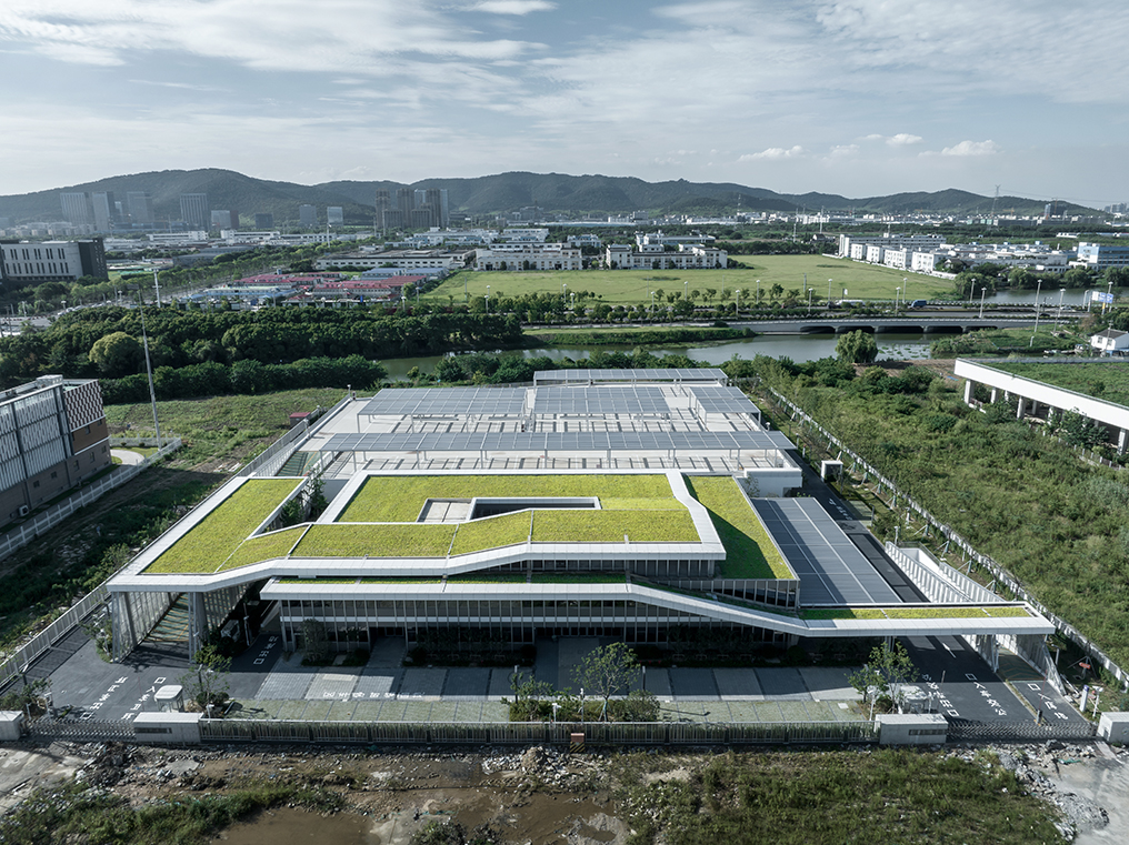 項(xiàng)目借鑒了“上蓋”設(shè)計(jì)的概念,將公交和環(huán)衛(wèi)兩個單位的停車場及其配套用房上下“疊加”在一起,安置進(jìn)了原本只能容納公交停車樞紐使用的地塊,實(shí)現(xiàn)了場地的疊合利用。為減少作業(yè)干擾,設(shè)計(jì)對公交和環(huán)衛(wèi)車輛的動線進(jìn)行分流,使其相對獨(dú)立?;诠蚕淼睦砟?,對兩家單位的配套用房進(jìn)行整合,以優(yōu)化空間組合。停車場質(zhì)樸裸露的混凝土構(gòu)件被金屬網(wǎng)包裹,與辦公建筑精致的玻璃和鋁板幕墻形成對比,相得益彰。