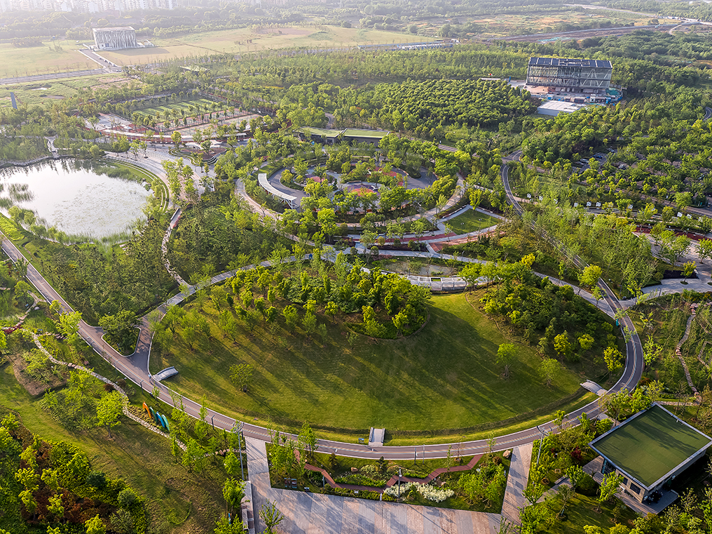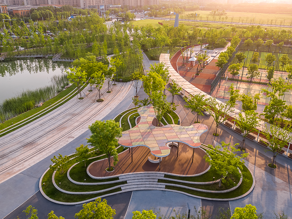 空間布局上形成三個(gè)功能光環(huán),分別為:1.全民健身動(dòng)能環(huán):公園重要的活動(dòng)區(qū)域,為不同層次年齡市民提供運(yùn)動(dòng)健身的場(chǎng)所;2.低碳環(huán)保綠能環(huán):依托彩葉森林、森林氧吧、環(huán)保主題展覽館為市民提供低碳環(huán)保的休閑生活方式;3.生態(tài)涵養(yǎng)水能環(huán):打造了融合景觀美化的高品質(zhì)海綿城市區(qū)域。通過這三個(gè)功能環(huán)的聚集、重疊、分離,形成不同的活動(dòng)空間,滿足市民不同的戶外休憩需求。