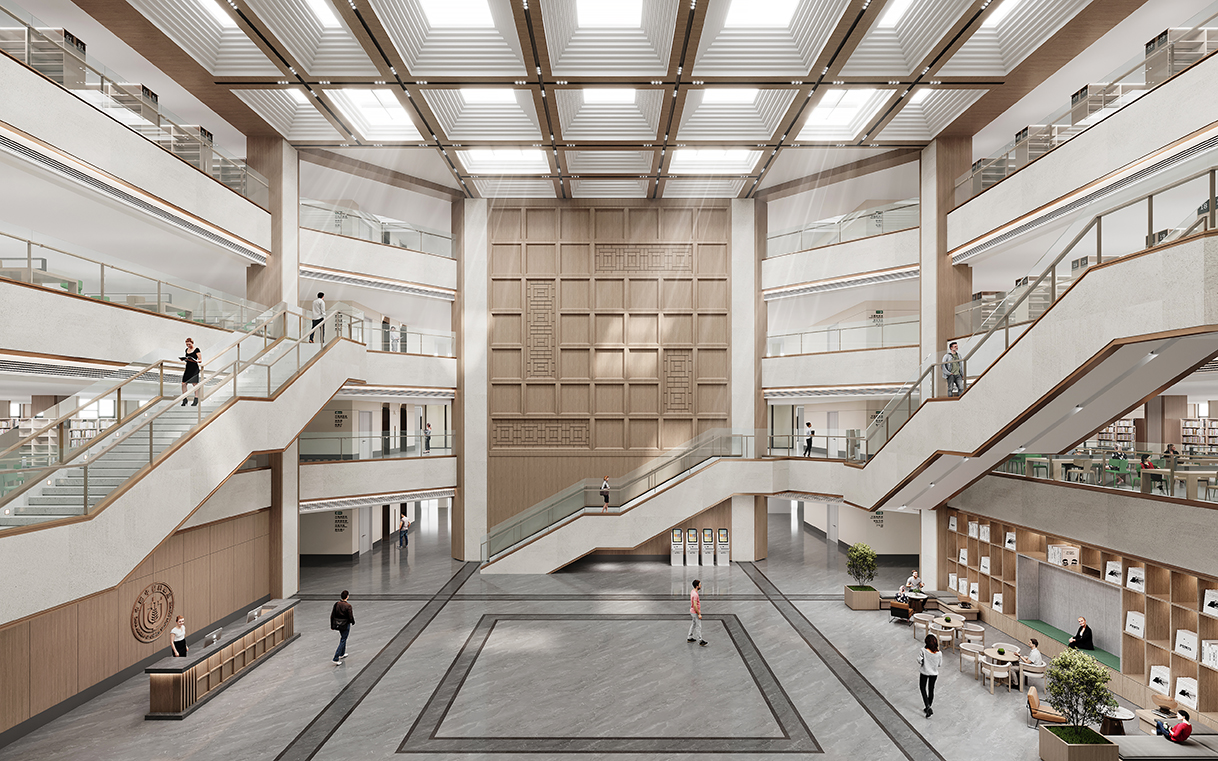 室內(nèi)設(shè)計(jì)以“大學(xué)校園”作為載體,將蘇州文化、中醫(yī)文化、學(xué)校性質(zhì)相結(jié)合,傳遞中醫(yī)研究型大學(xué)辦學(xué)新方式。通過“秉承—師承傳統(tǒng)于彈性通用,兼顧—中醫(yī)國粹與蘇州特色,匯聚—人文整體與道法自然,融合—中藥本草與現(xiàn)代醫(yī)學(xué)”為設(shè)計(jì)理念,提取蘇州園林和中醫(yī)文化元素,建造本項(xiàng)目室內(nèi)空間。滿足低碳環(huán)保、節(jié)能減排為設(shè)計(jì)原則,用細(xì)節(jié)造型鋪墊的儀式感向美好校園致敬,打造一個(gè)擁有地域特性,文化特色鮮明的世界著名的研究型大學(xué)。